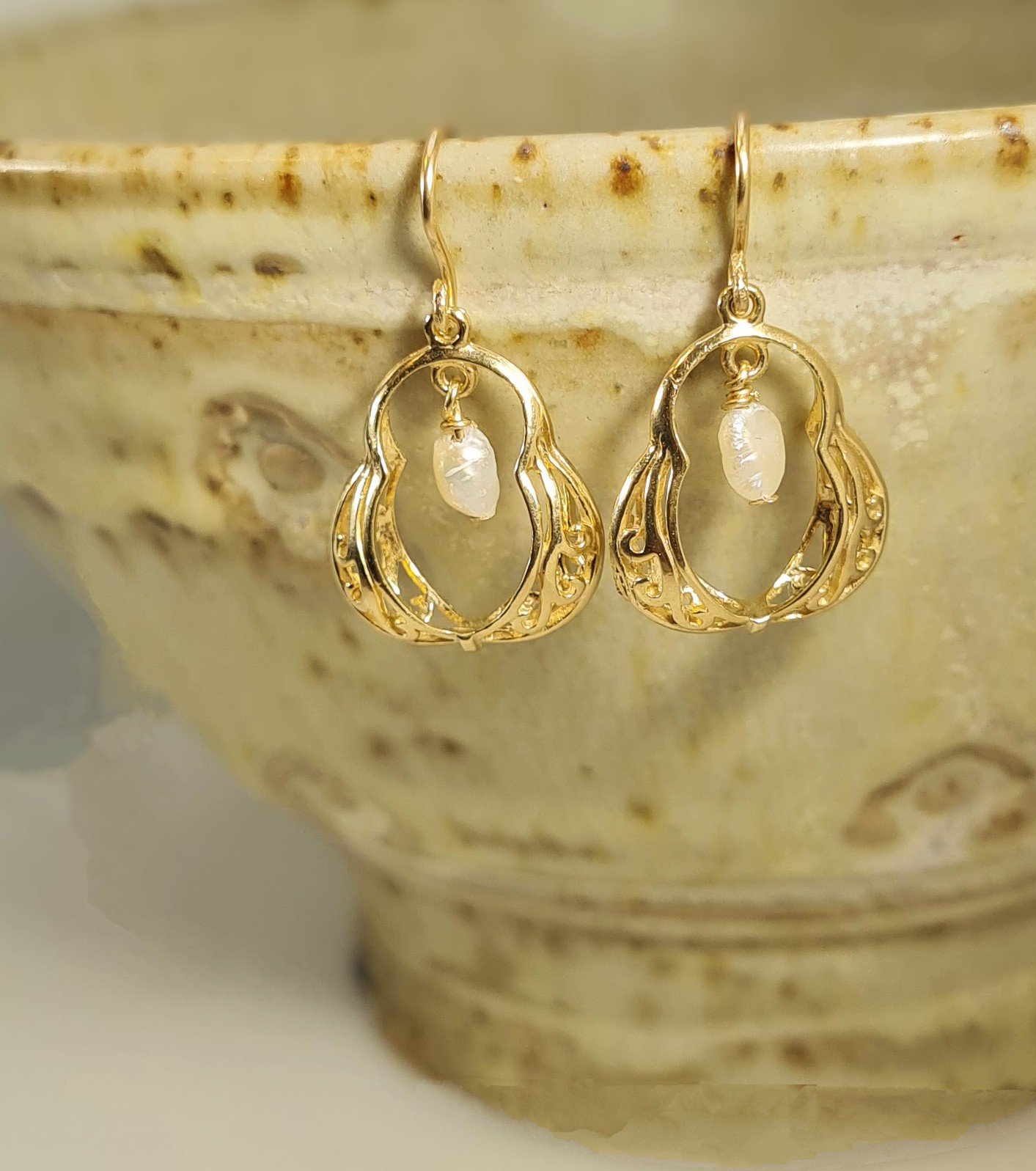 עגיל אגס מבסיס ציפוי זהב איכותי 14k