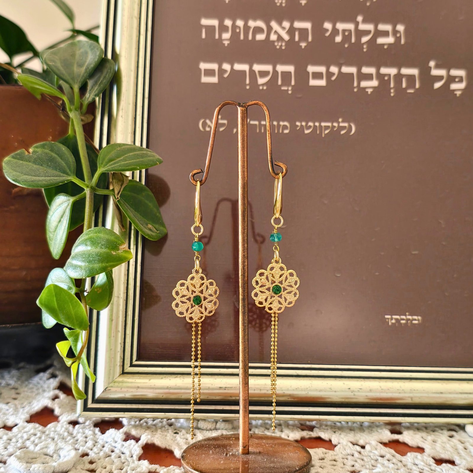 ציפוי זהב ואבן אמרלד ירוק