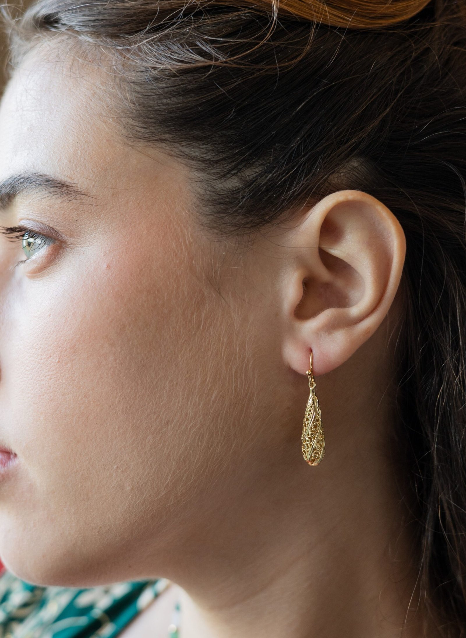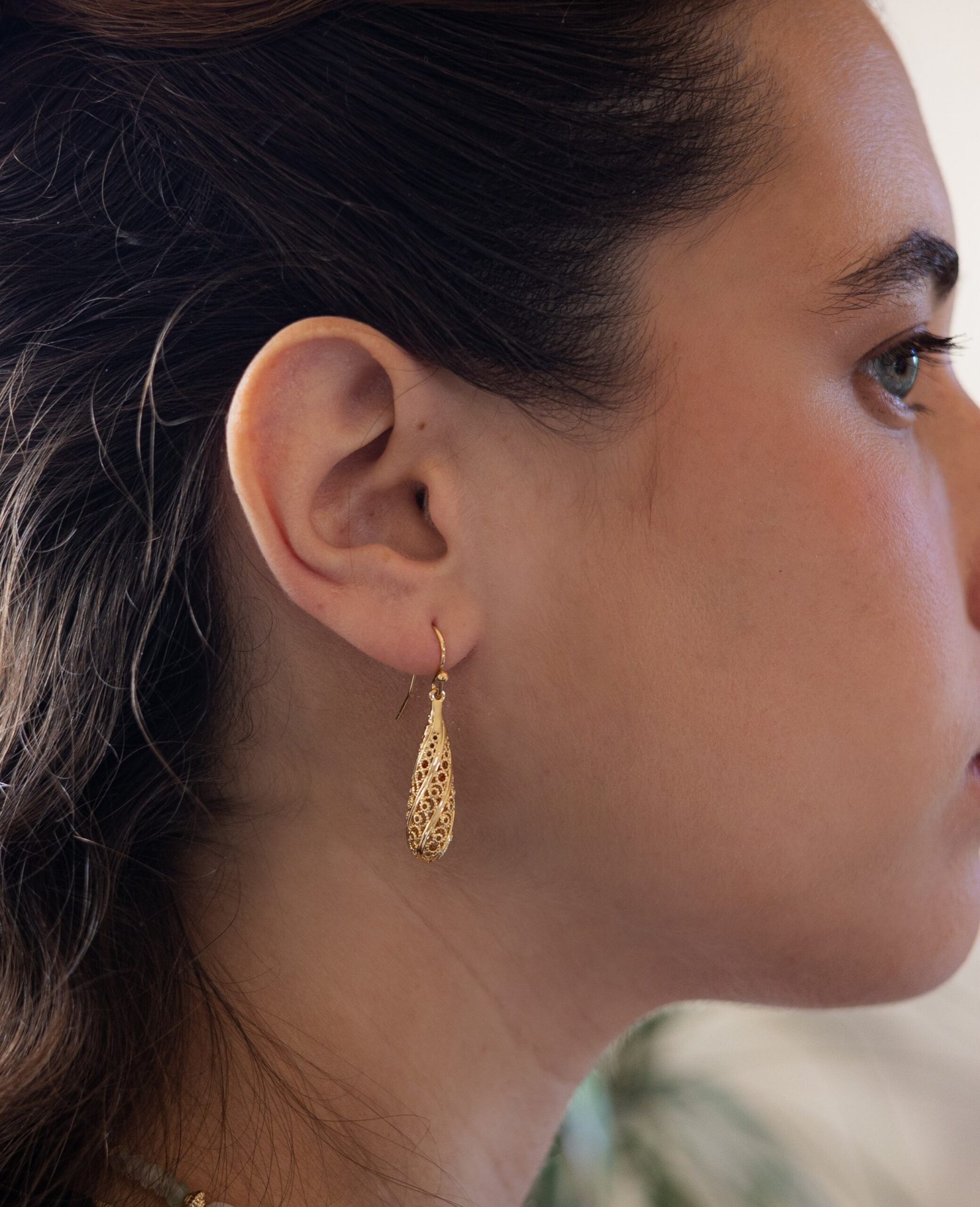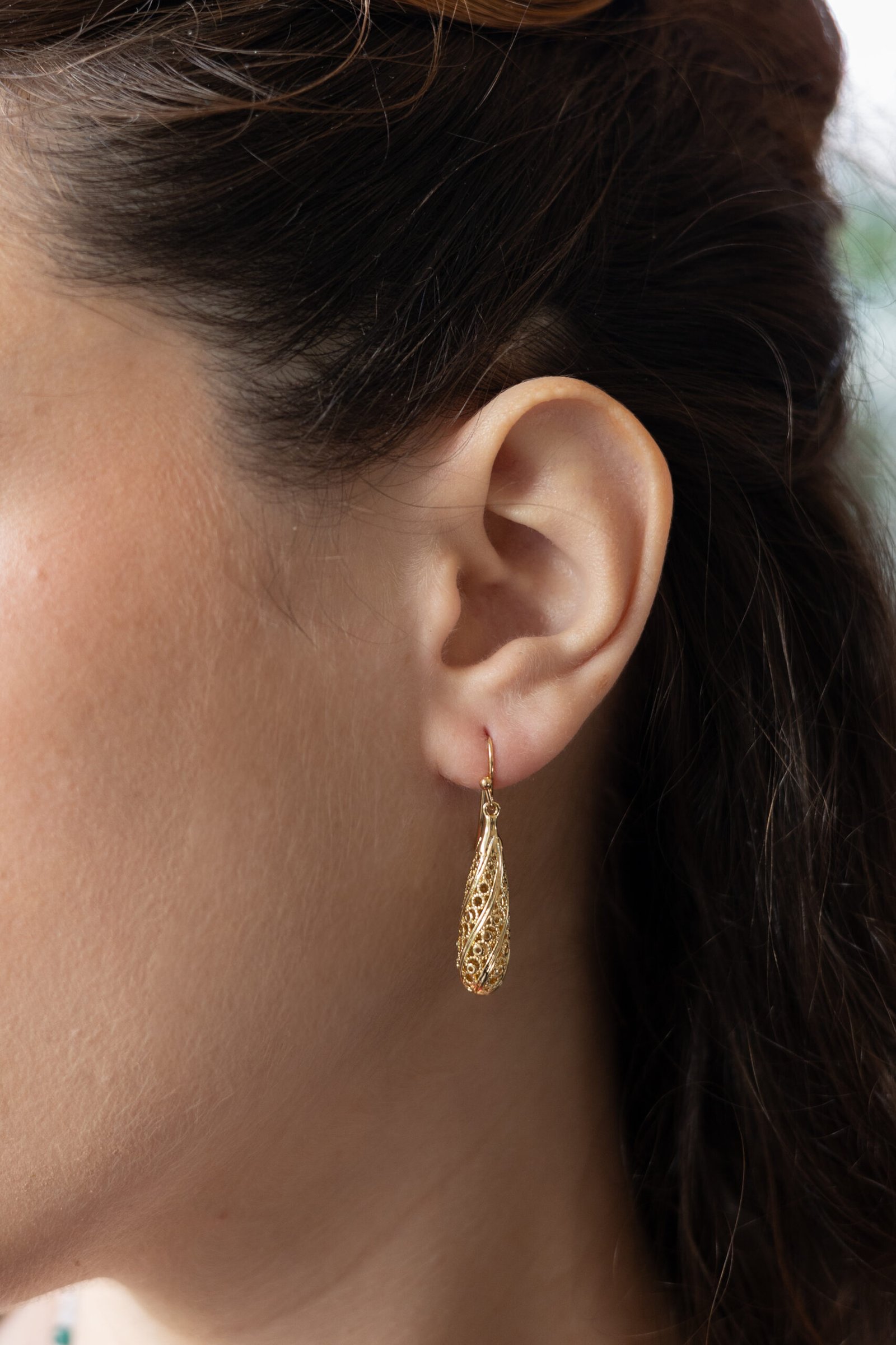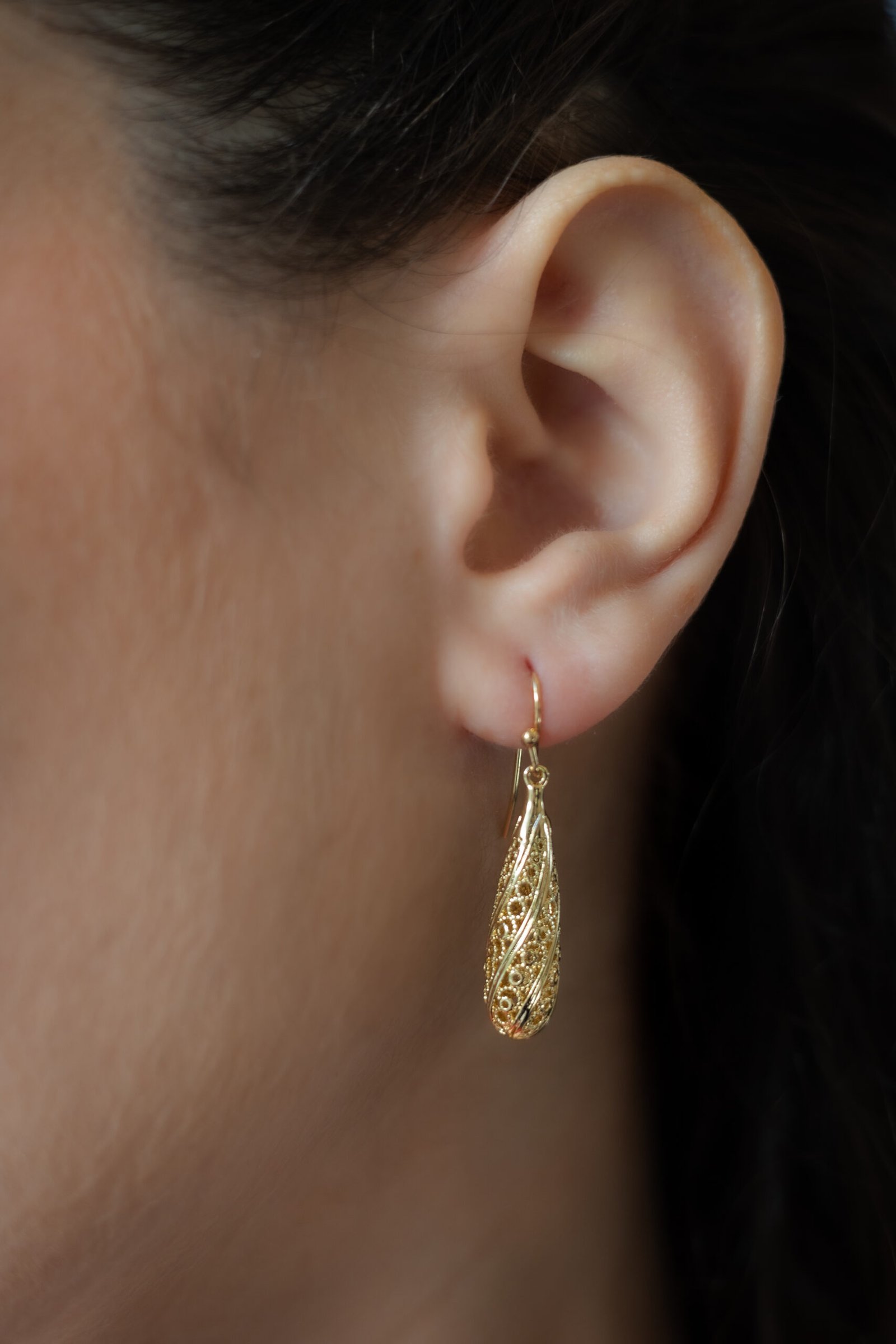 עגילי צְרוּפָה ספירלה עדינה חרוטה בקווים שנצרפים בלב.